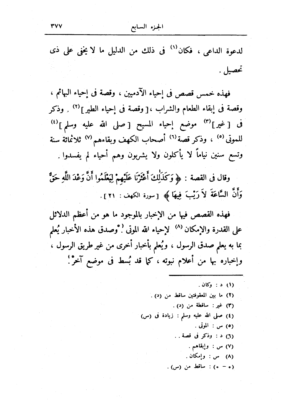 فهذه خمس قصص في إحياء الآدميين، وقصة في إحياء البهائم، وقصة في إبقاء الطعام والشراب، وقصة في إحياء الطير.