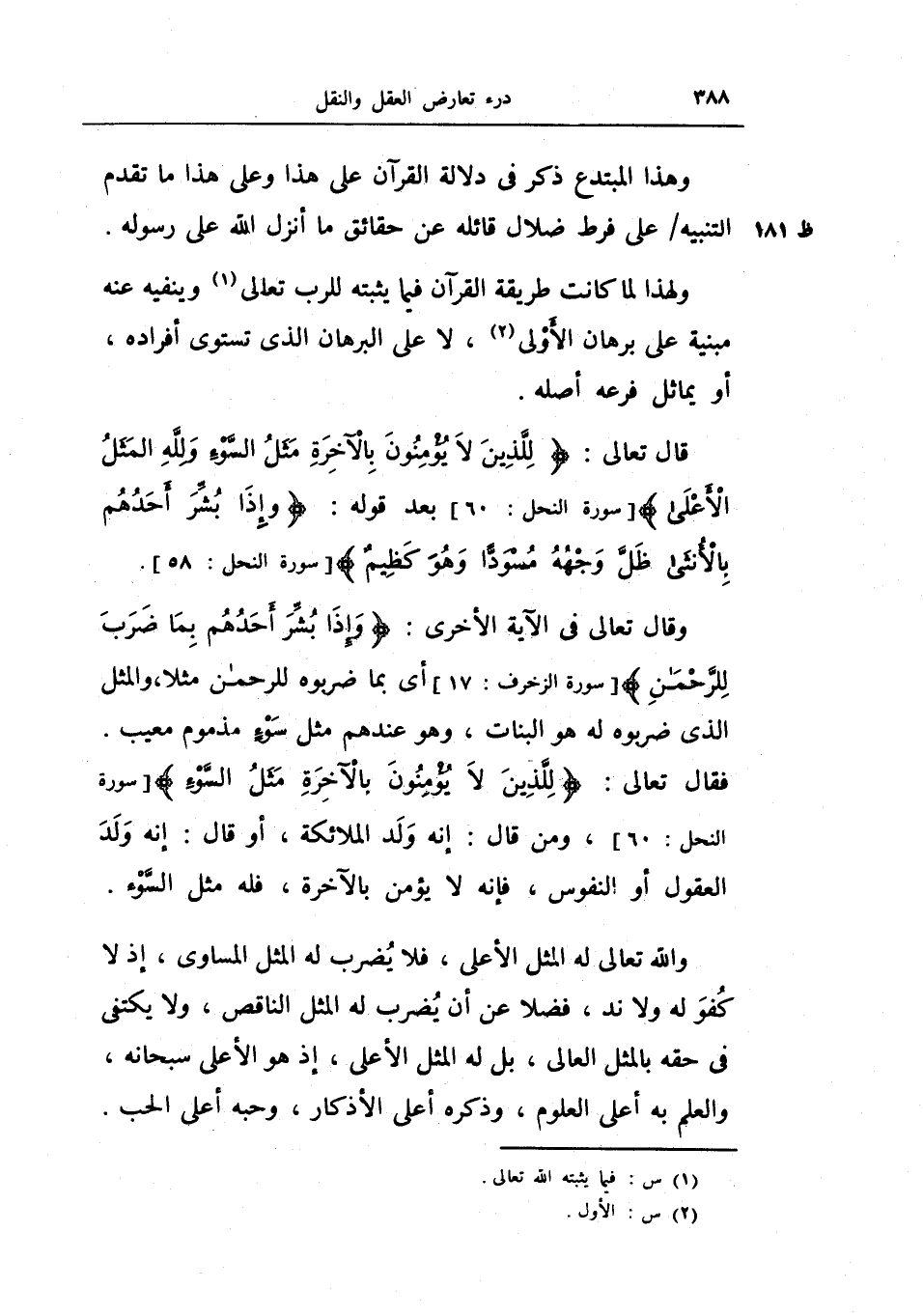 ولهذا كانت طريقة القرآن فيما يثبته للرب تعالى وينفيه عنه مبنية على برهان الأولى، لا على البرهان الذي تستوي أفراده، أو يماثل فرعه أصله.