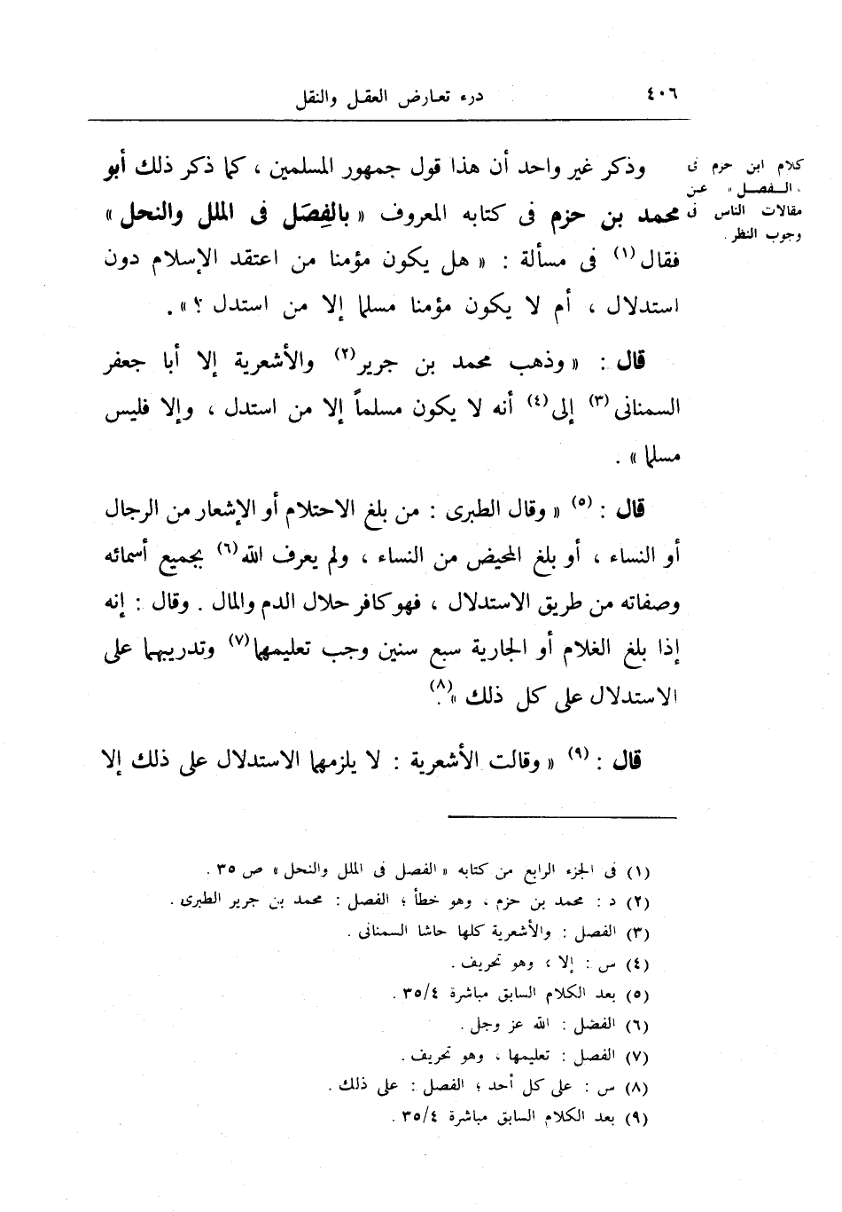 كلام ابن حزم في الفصل