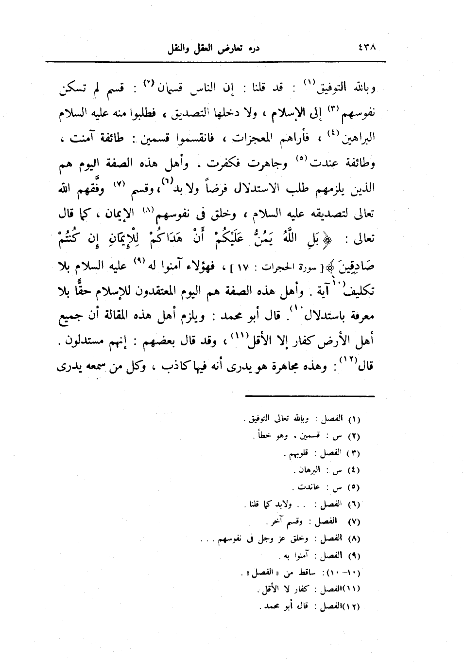 قال أبو محمد ويلزم أهل هذه المقالة أن جميع أهل الأرض كفار إلا الأقل، وقد قال بعضهم: إنهم مستدلون.