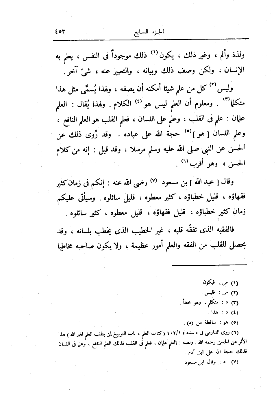 ولهذا يقال: العلم علمان: علم في القلب، وعلم على اللسان، فعلم القلب هو العلم النافع، وعلم اللسان هو حجة الله على عباده.