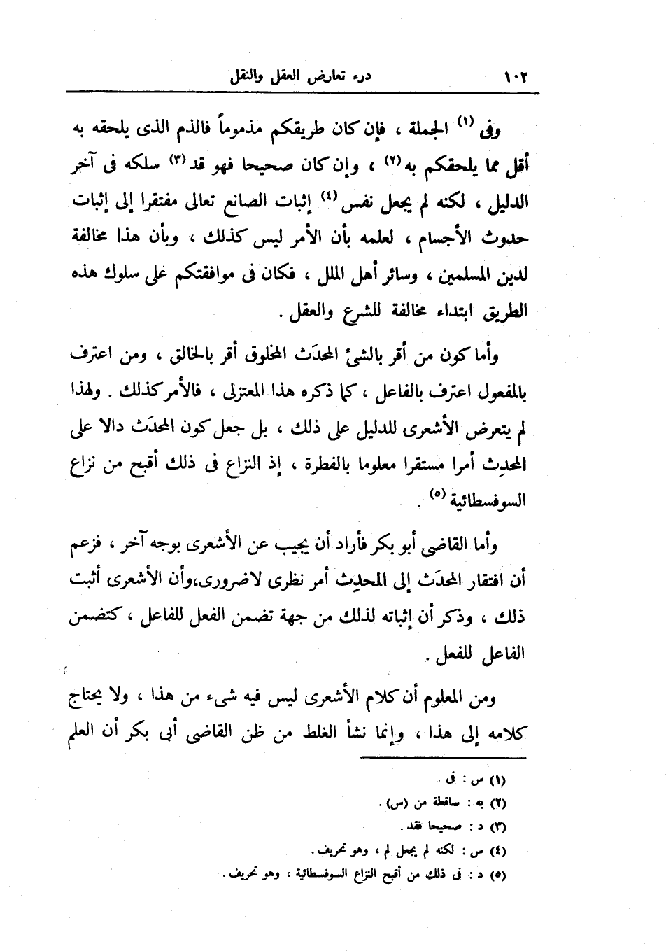 ولهذا لم يتعرض الأشعري للدليل على ذلك، بل جعل كون المحدث دالاً على المحدث أمراً مستقراً معلوماً بالفطرة، إذ النزاع في ذلك أقبح من نزاع السوفسطائية.