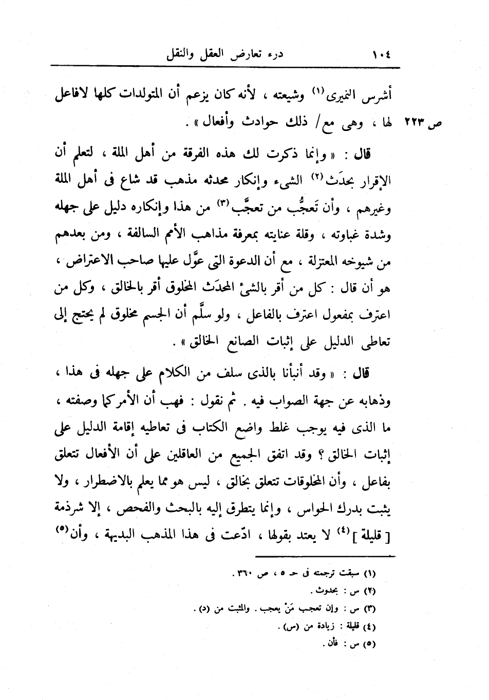 قال: (وإنما ذكرت لك هذه الفرقة من أهل الملة، لتعلم أن الإقرار بحدث الشيء وإنكار محدثه مذهب قد شاع في أهل الملة وغيرهم، وأن تعجب من تعجب من هذا وإنكاره دليل على جهله وشدة غباوته، وقلة عنايته بمعرفة مذاهب الأمم السالفة، ومن بعدهم من شيوخه المعتزلة، مع أن الدعوة التي عول عليها صاحب الأعتراض، هو أن قال: كل من أقر بالشيء المحدث المخلوق أقر بالخالق، وكل من اعترف بمفعول اعترف بالفاعل، ولو سلم أن الجسم مخلوق لم يحتج إلى تعاطي الدليل على إثبات الصانع الخالق) .