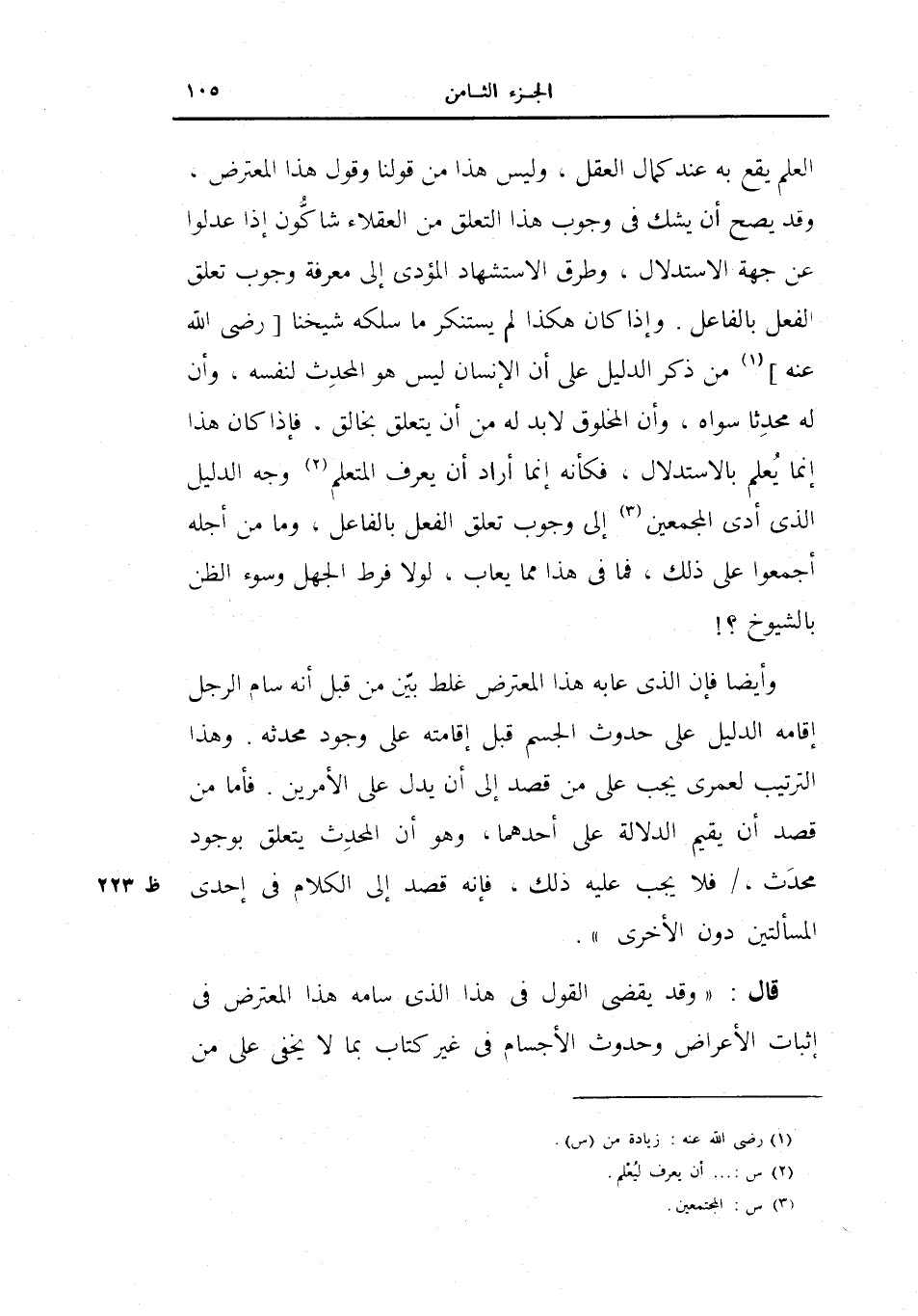 وأيضاً فإن الذي عابه هذا المعترض غلط بين من قبل أنه سام الرجل إقامه الدليل على حدوث الجسم قبل إقامته على وجود محدثه.