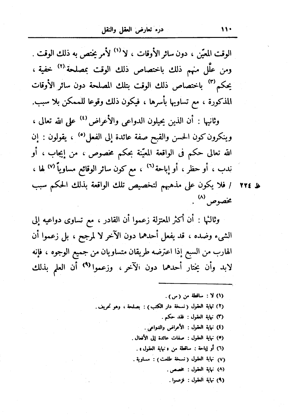ومن علل منهم ذلك باختصاص ذلك الوقت بمصلحة خفية، يحكم باختصاص ذلك الوقت بتلك المصلحة دون سائر الأوقات المذكورة، مع تساويها بأسرها، فيكون ذلك وقوعاً للممكن بلا سبب.