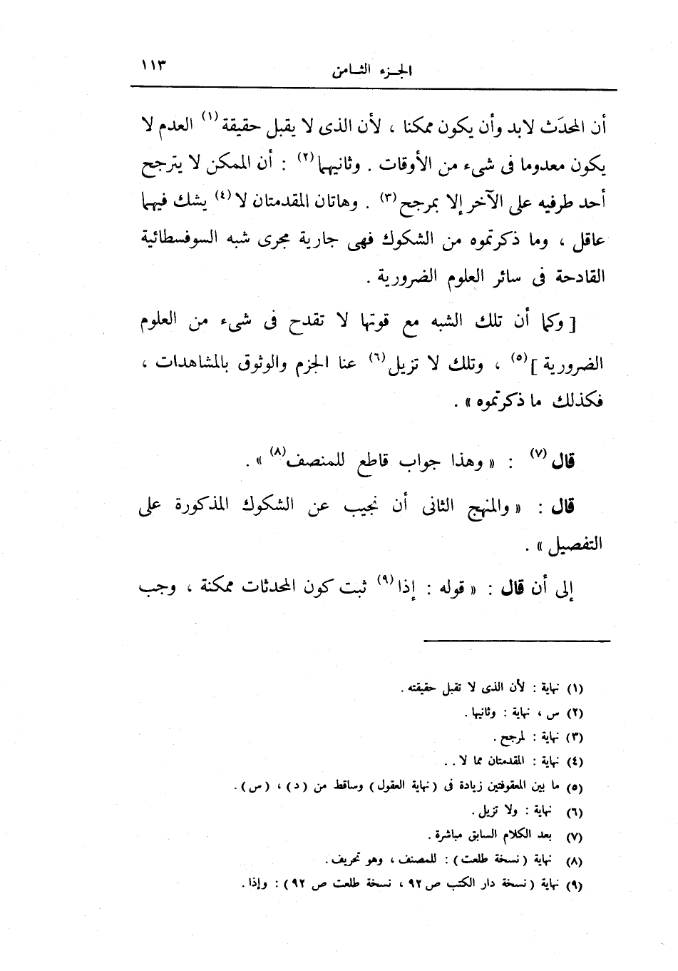 أن المحدث لا بد وأن يكون ممكناً، لأن الذي لا يقبل حقيقة العدم لا يكون معدوداً في شيء من الأوقات.