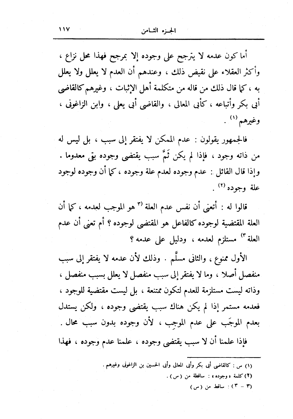 فالجمهور يقولون: عدم الممكن لا يفتقر إلى سبب، بل ليس له من ذاته وجود، فإذا لم يكن ثم سبب يقتضي وجوده نفي معدوماً.