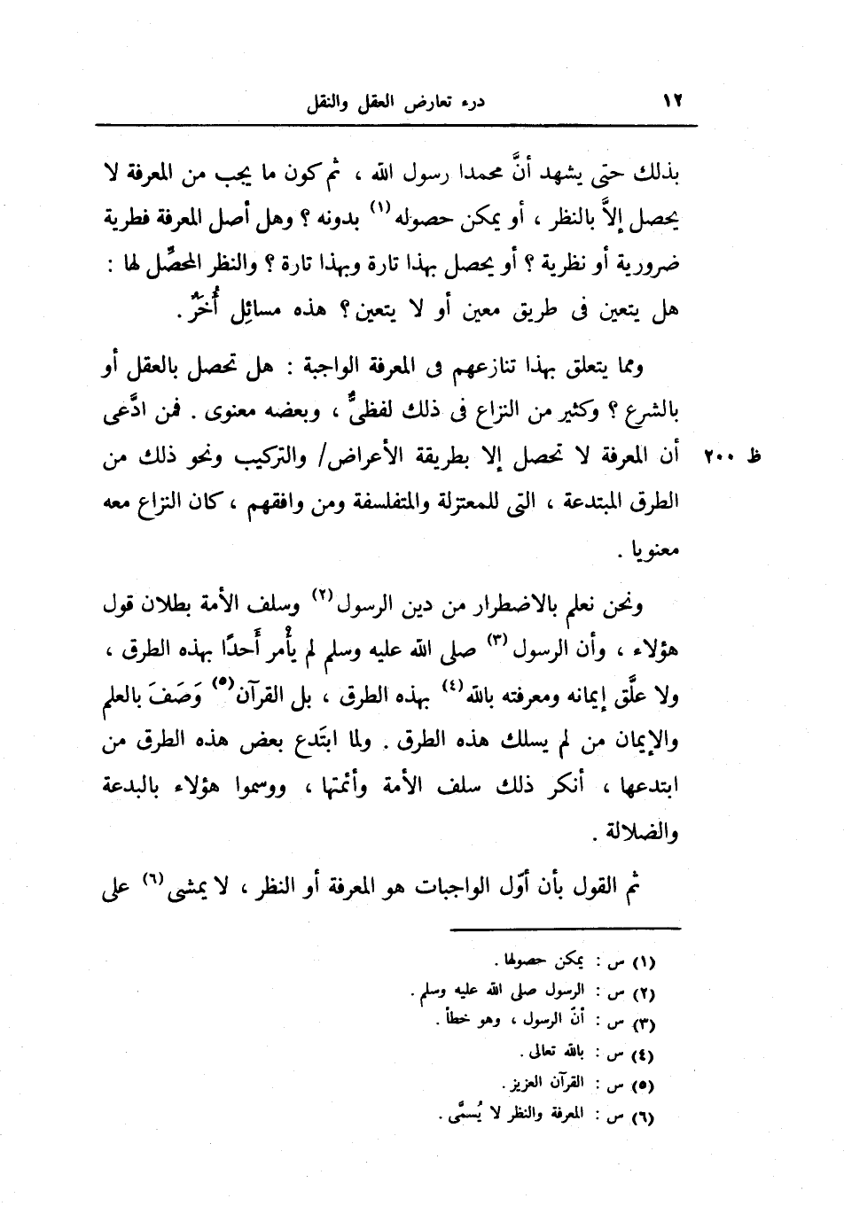 ونحن نعلم بالاضطرار من دين الرسول وسلف الأمة بطلان قول هؤلاء، وأن الرسول صلى الله عليه وسلم لم يأمر أحداً بهذه الطرق، ولا علق إيمانه، ومعرفته بالله بهذه الطرق، بل القرآن وصف بالعلم والإيمان من لم يسلك هذه الطرق.