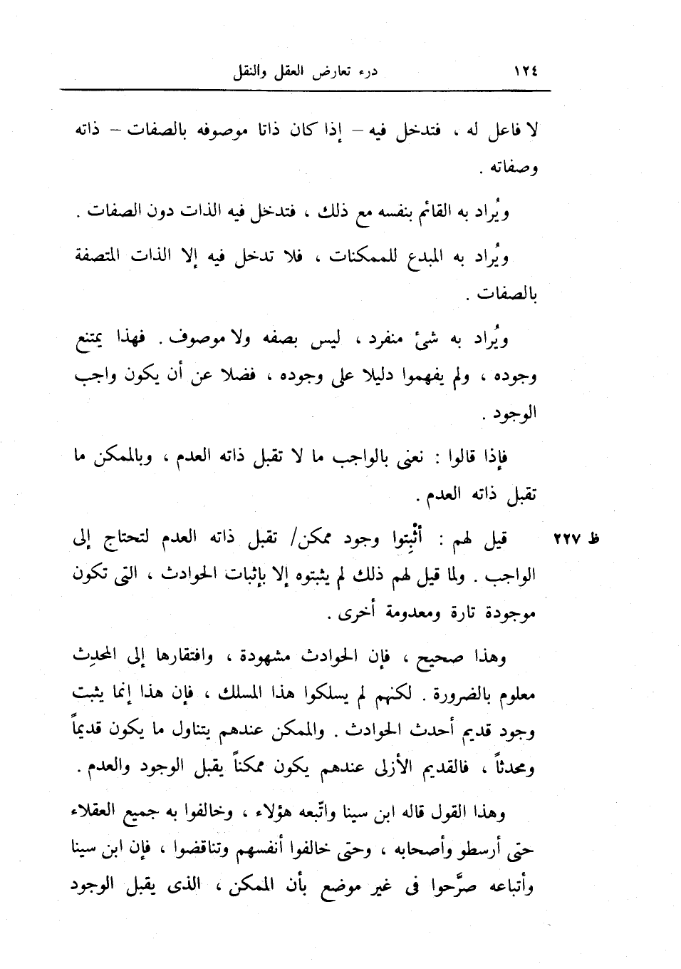 ولما قيل لهم ذلك لم يثبتوه إلا بإثبات الحوادث، التي تكون موجودة تارة ومعدومة أخرى.