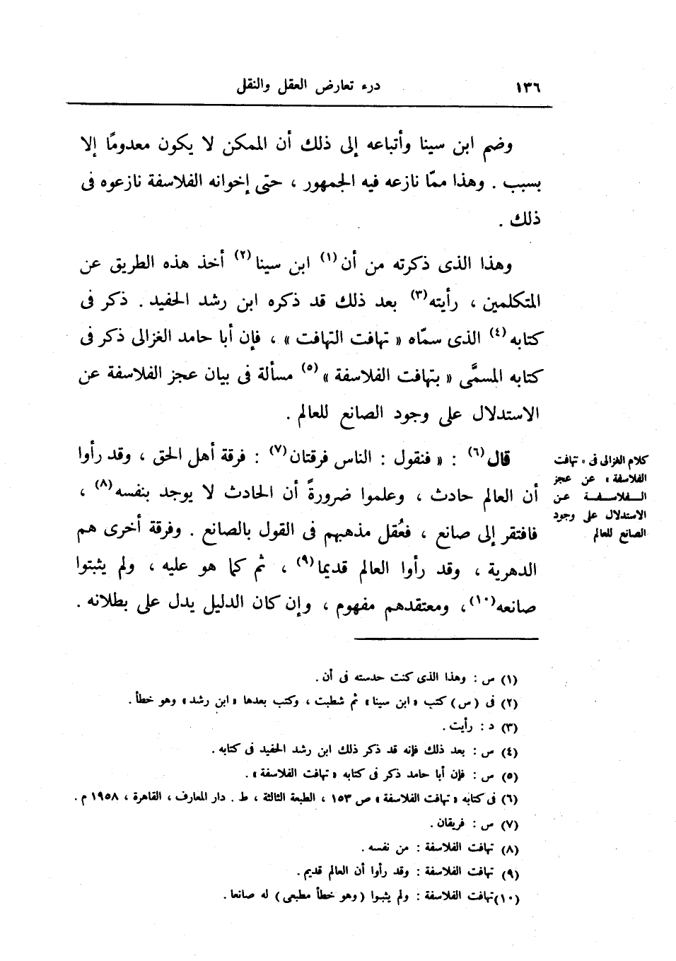 وهذا الذي ذكرته من أن ابن سينا أخذ هذه الطريق عن المتكلمين، رأيته بعد ذلك قد ذكره ابن رشد الحفيد.