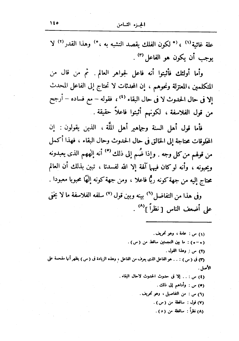 ثم من قال من المتكلمين، المعتزلة ونحوهم، إن المحدثات لا تحتاج إلى الفاعل المحدث إلا في حال الحدوث لا في حال البقاء فقوله - مع فساده - أرجح من قول الفلاسفة، لكونهم أثبتوا فاعلاً حقيقة.