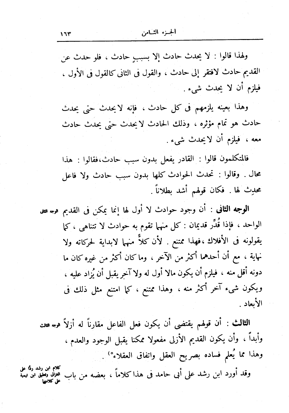 وقد أورد ابن رشد على أبي حامد في هذا كلاماً، بعضه من باب