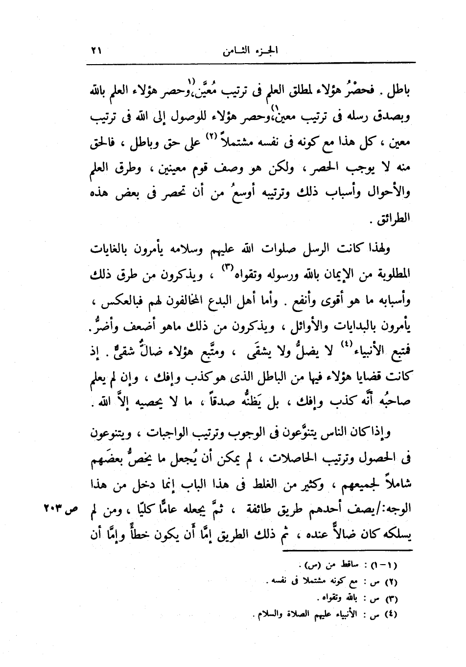 فحصر هؤلاء لمطلق العلم في ترتيب معين، وحصر هؤلاء العلم بالله وبصدق رسله في ترتيب معين، وحصر هؤلاء للوصول إلى الله في ترتيب معين، كل هذا مع كونه في نفسه مشتملاً على حق وباطل، فالحق منه لا يوجب الحصر، ولكن هو وصف قوم معينين، وطرق العلم والأحوال وأسباب ذلك وترتيبه أوسع من أن تحصر في بعض هذه الطرائق.