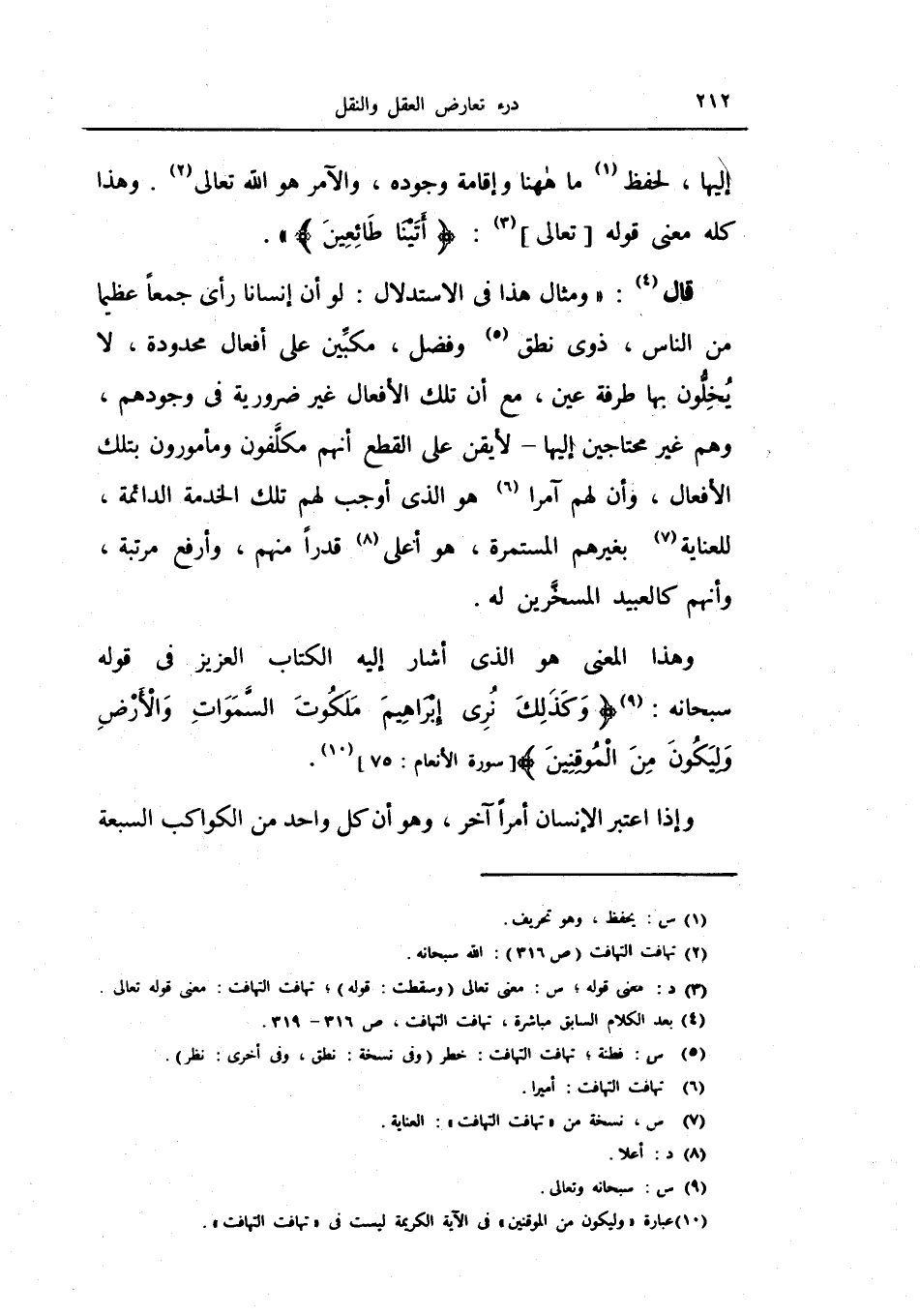قال: (ومثال هذا في الاستدلال: لو أن إنساناً رأى جمعاً عظيماً من اناس، ذوي نطق وفضل، مكبين على أفعال محدودة، لا يخلون بها طرفة عين، مع أن تلك الأفعال غير ضرورية في وجودهم، وهم غير محتاجين إليها - لأيقن على القطع أنهم مكلفون ومأمورون بتلك الأفعال، وأن لهم آمراً هو الذي أوجب لهم تلك الخدمة الدائمة، للعناية بغيرهم المستمرة، هو أعلى قدراً منهم، وأرفع مرتبة، وأنهم كالعبيد مسخرين له.