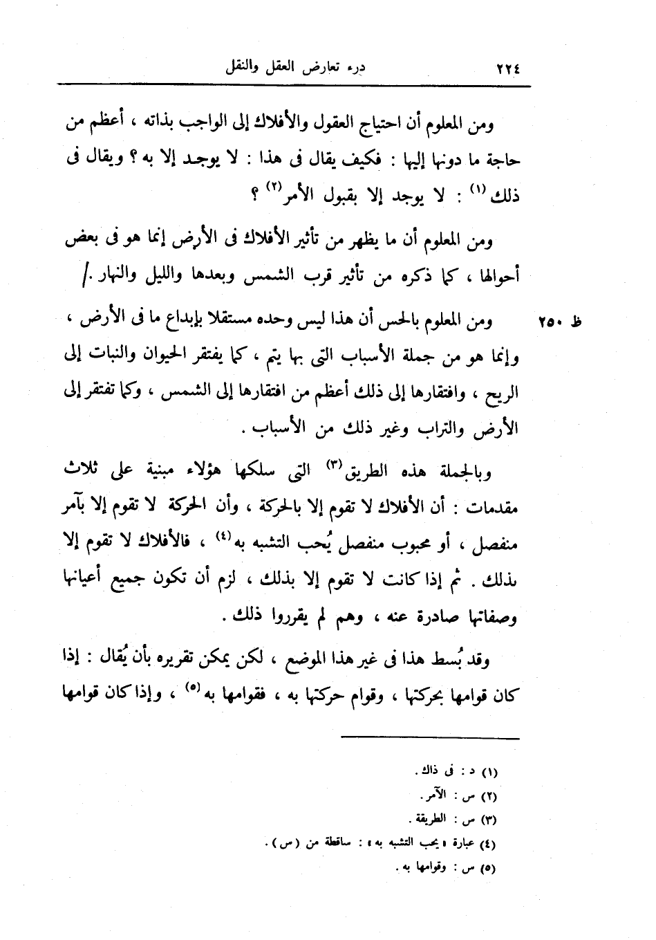 ومن المعلوم أن احتياج العقول والأفلاك إلى الواجب بذاته، أعظم من حاجة ما دونها إليها: فكيف يقال في هذا: لا يوجد إلا به؟ ويقال في ذلك: لا يوجد إلا بقبول الأمر؟
