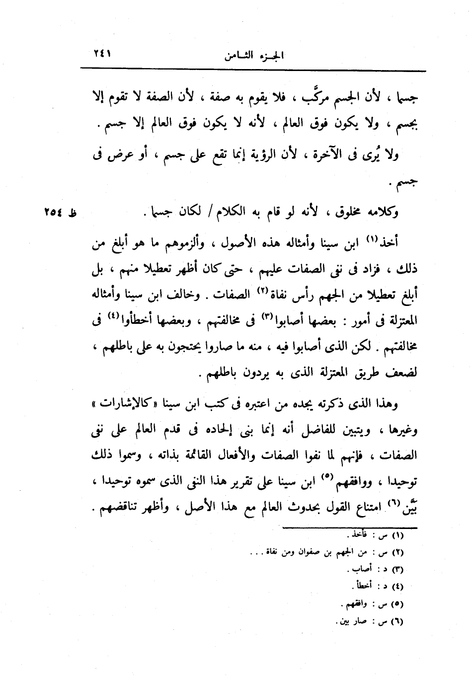 وخالف ابن سينا وأمثاله المعتزلة في أمور: بعضها أصابوا في مخالفتهم، وبعضها أخطأوا في مخالفتهم، لكن الذي أصابوا فيه، منه ما صاروا يحتجون به على باطلهم، لضعف طريق المعتزلة الذي به يردون باطلهم.