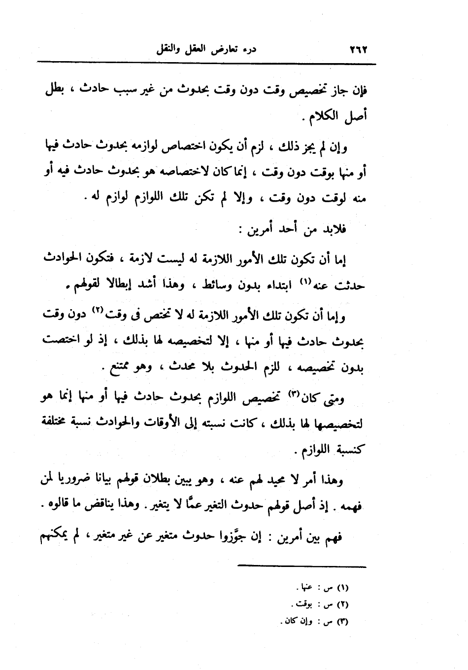 ومتى كان تخصيص اللوازم لحدوث حادث فيها أو منها إنما هو لتخصيصها لها بذلك، كانت نسبته إلى الأوقات والحوادث نسبة مختلفة كنسبة اللوازم.