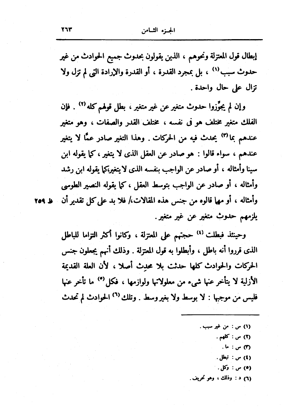 وهذا التغير صادر عما لا يتغير عندهم، سواء قالوا: هو صدر عن العقل الذي لا يتغير، كما يقوله ابن سينا وأمثاله، أو صادر عن الواجب بنفسه الذي لا يتغير، كما يقوله ابن رشد وأمثاله، أو صادر عن الواجب بتوسط العقل، كما يقوله النصير الطوسي وأمثاله، أو مهما قالوه من جنس هذه المقالات فلا بد على كل تقدير أن يلزمهم حدوث متغير عن غير متغير.