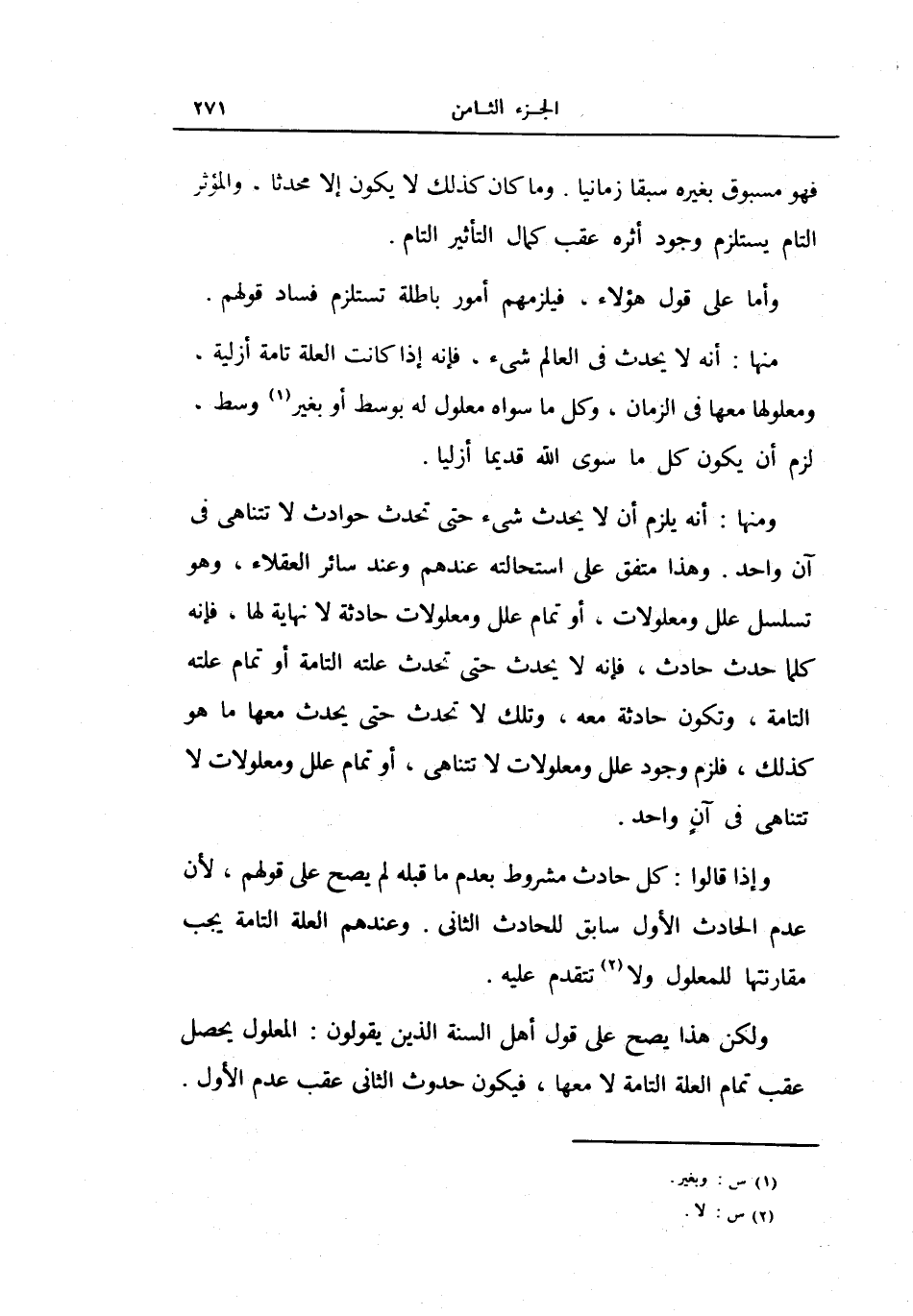 ولكن هذا يصح على قول أهل السنة الذين يقولون: المعلول يحصل عقب تمام العلة التامة لا معها، فيكون حدوث الثاني عقب عدم الأول.