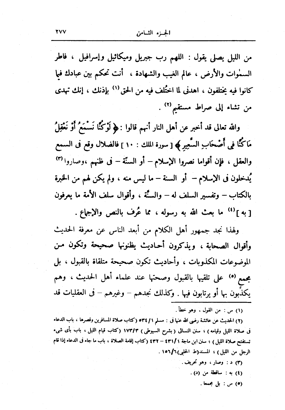 والله تعالى قد أخبر عن أهل النار أنهم قالوا: {لو كنا نسمع أو نعقل ما كنا في أصحاب السعير} ، فالضلال وقع في السمع والعقل، فإن أقواماً نصروا الإسلام - أو السنة - في ظنهم، وصاروا يدخلون في الإسلام - أو السنة - ما ليس منه، ولم يكن لهم من الخبرة بالكتاب - وتفسير السلف له - والسنة، وأقوال سلف الأمة ما يعرفون به ما بعث الله به رسوله، مما عرف بالنص والإجماع.