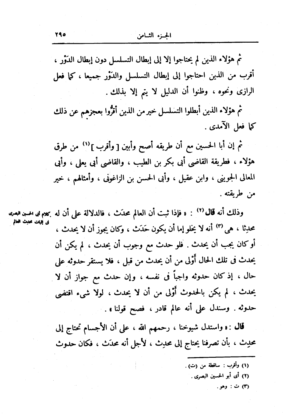 كلام أبي الحسن البصري في إثبات محدث العالم