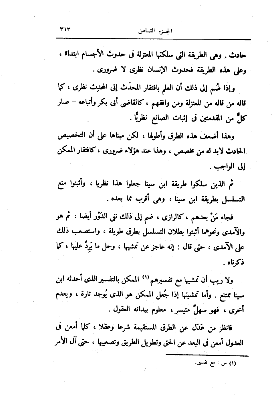 ثم الذي سلكوا طريقة ابن سينا جعلوا هذا نظرياً، وأثبتوا منع التسلسل بطريقة ابن سينا، وهي أقرب مما بعده.