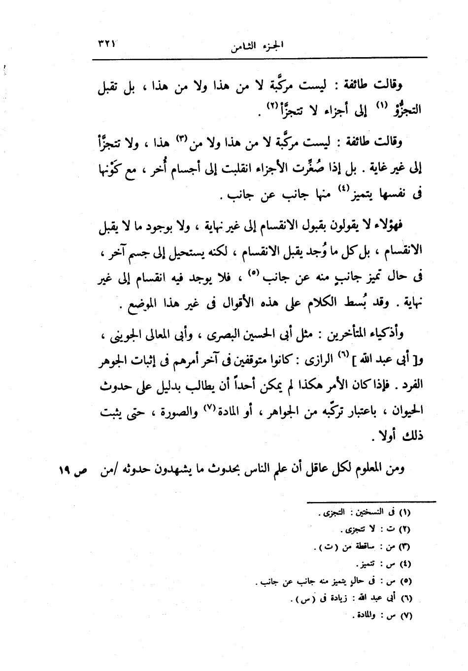 وأذكياء المتأخرين: مثل أبي الحسين البصري، وأبي المعالي الجويني، وأبي عبد الله الرازي: كانوا متوقفين في آخر أمرهم في إثبات الجوهر الفرد.
