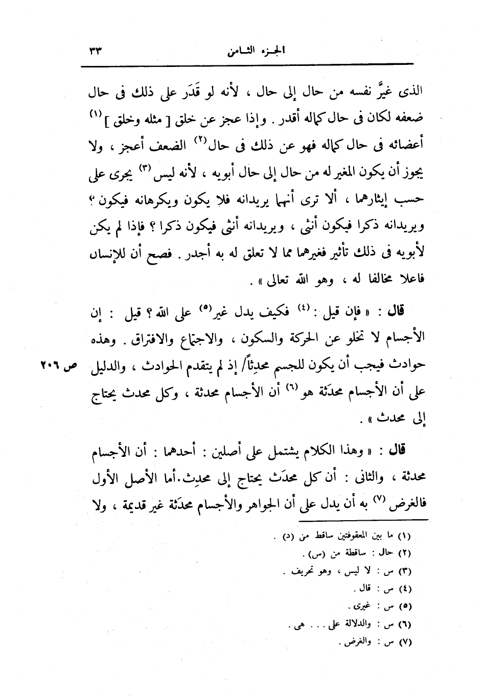 وهذه حوادث فيجب أن يكون للجسم محدثاً إذ لم يتقدم الحوادث، والدليل على أن الأجسام محدثة هو أن الأجسام محدثة، وكل محدث يحتاج إلى محدث) .