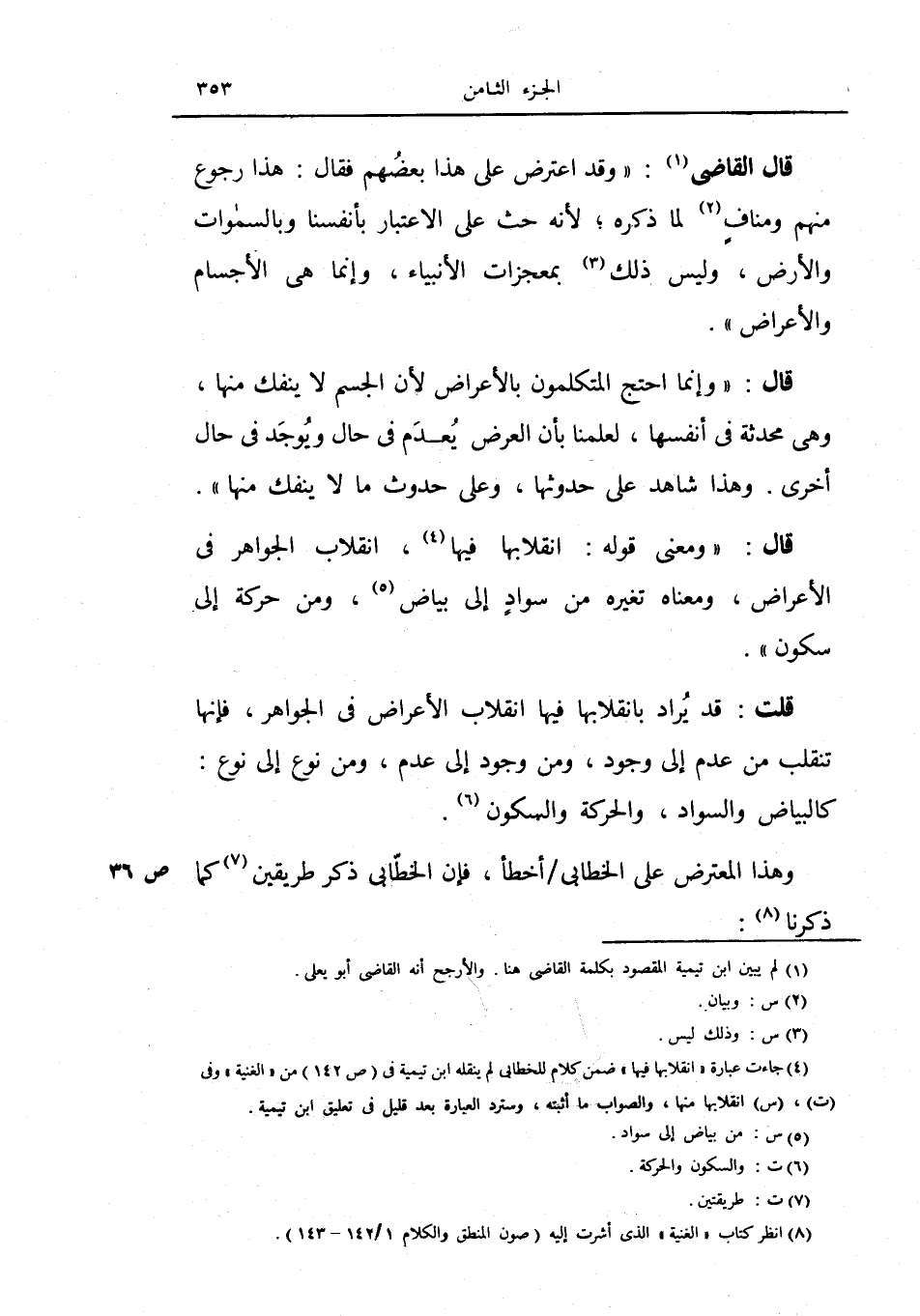 قلت: قد يراد بانقلابها فيها انقلاب الأعراض في الجواهر، فإنها تنقلب من عدم إلى وجود، ومن وجود إلى عدم، ومن نوع إلى نوع: كالبياض والسواد، والحركة والسكون.