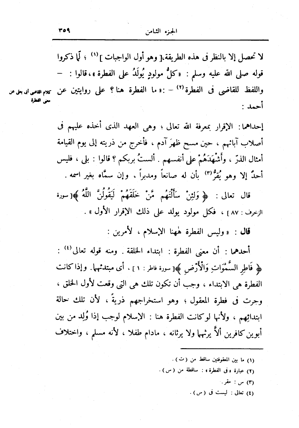 كلام القاضي أبي يعلى عن معنى الفطرة