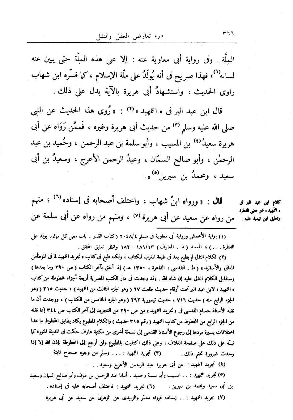 كلام ابن عبد البر في التمهيد عن معنى الفطرة
