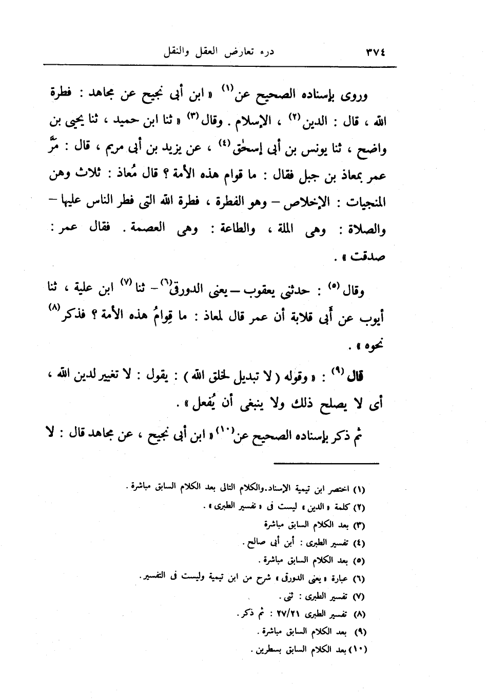 وروي بإسناده الصحيح عن (ابن أبي نجيح عن مجاهد: فطرة الله، قال: الدين، الإسلام.
