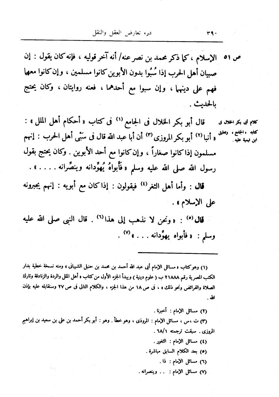 كلام أبي بكر الخلال في كتابه الجامع