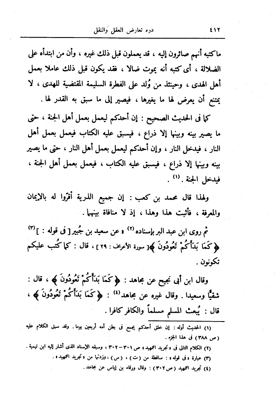 ثم روى ابن عبد البر بإسناده (عن سعيد بن جبير في قوله: {كما بدأكم تعودون} ، قال: كما كتب عليكم تكونون.