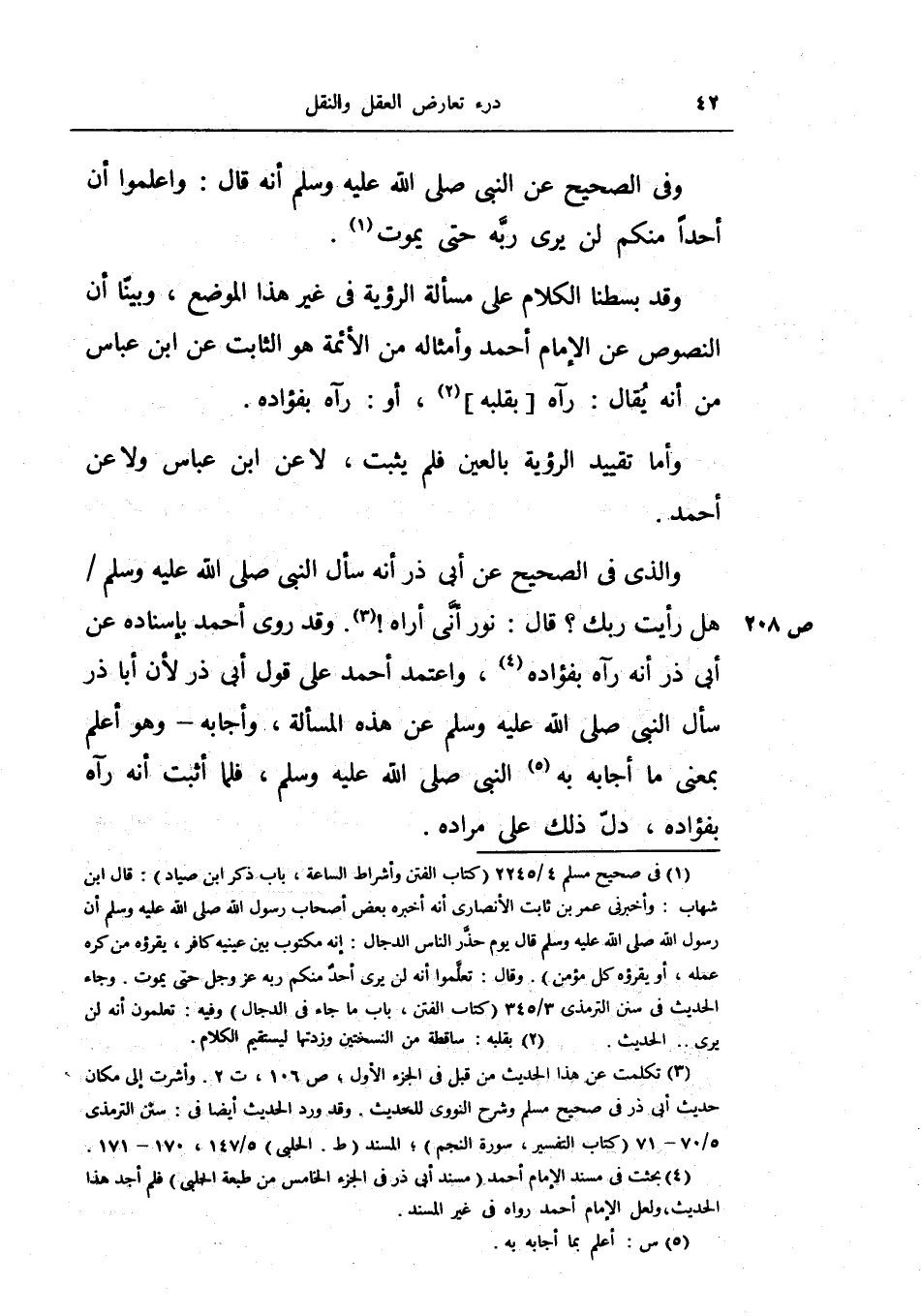 وقد بسطنا الكلام على مسألة الرؤية في غير هذا الموضع، وبينا أن النصوص عن الإمام أحمد وأمثاله من الأئمة هو الثابت عن ابن عباس من أنه يقال: رآه بقلبه، أو: رآه بفؤاده.