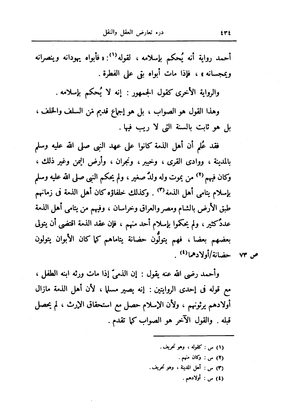 وأحمد رضي الله عنه يقول: إن الذمي إذا مات ورثه ابنه الطفل، مع قوله في إحدى الروايتين: إنه يصير مسلماً، لأن أهل الذمة ما زال أولادهم يرثونهم، ولأن الإسلام حصل مع استحقاق الإرث، لم يحصل قبله.