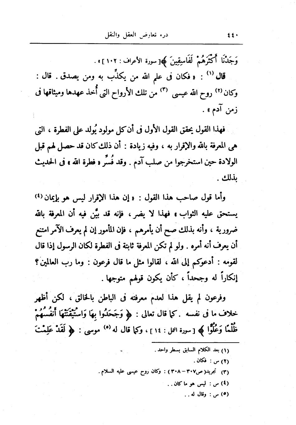 ولو لم تكن المعرفة ثابتة في الفطرة لكان الرسول إذا قال لقومه: أدعكم إلى الله، لقالوا مثل ما قال فرعون: وما رب العالمين؟ إنكاراً له وجحداً، كأن يكون قولهم متوجهاً.