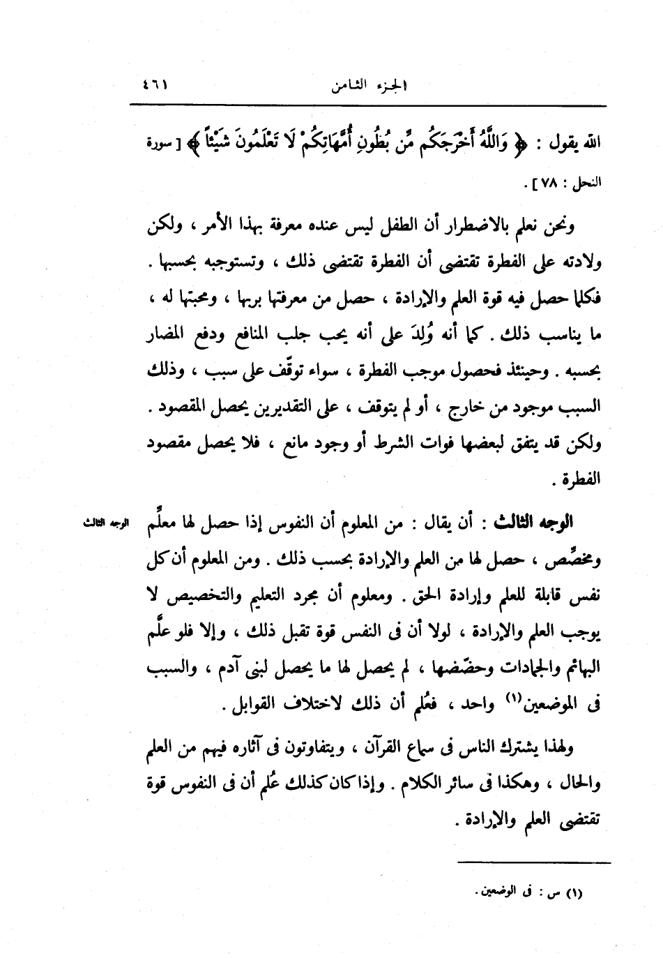 وإذاكان كذلك علم أن في النفوس قوة تقتضي العلم والإرادة.