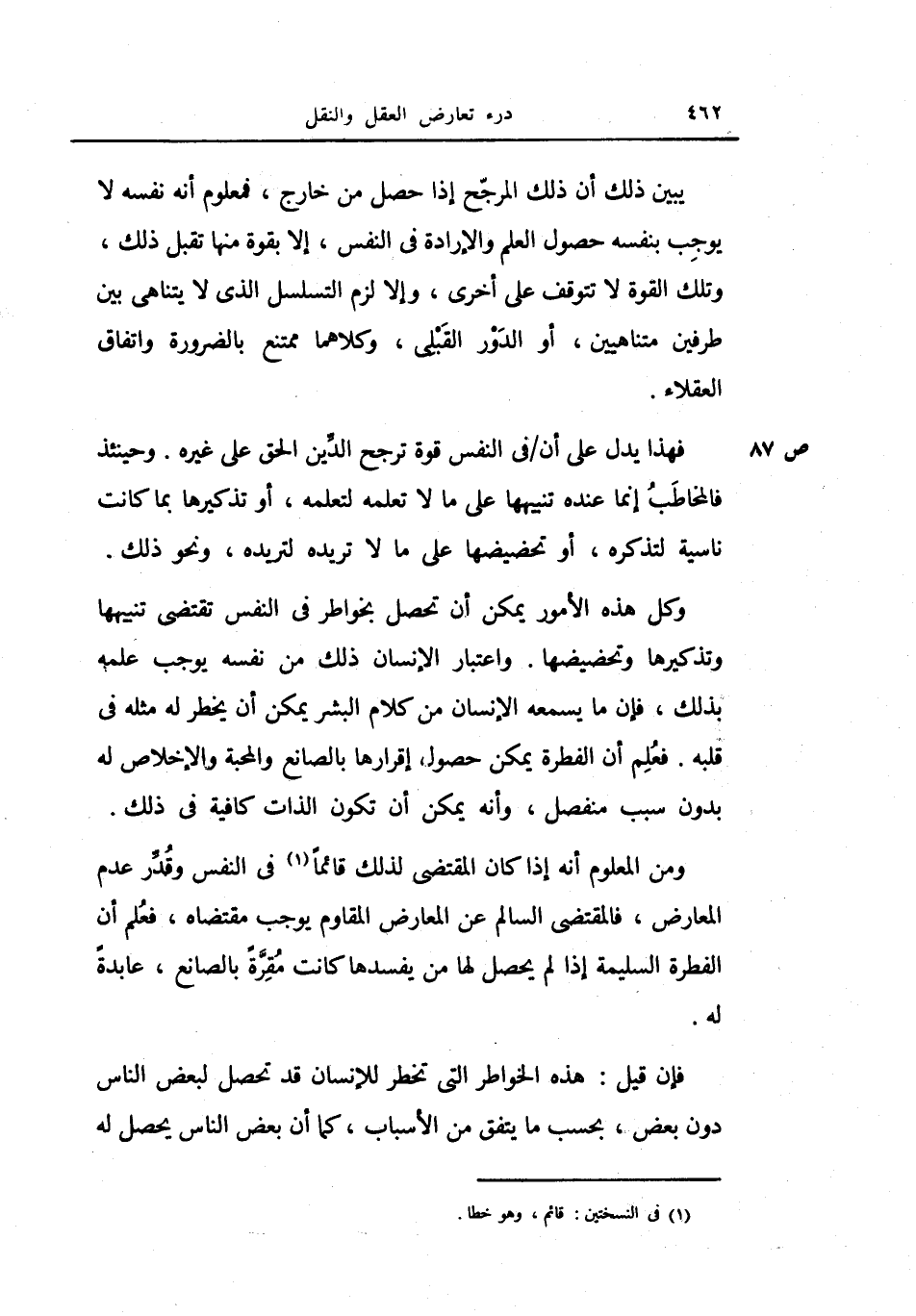 يبين ذلك أن ذلك المرجح إذا حصل من خارج، فمعلوم أنه نفس لا يوجب بنفسه حصول العلم والإرادة في النفس، إلا بقوة منها تقبل ذلك، وتلك القوة لا تتوقف على أخرى، وإلا لزم التسلسل الذي لا يتناهى بين طرفين متناهين، أو الدور القبلي، وكلاهما ممتنع بالضرورة واتفاق العقلاء.