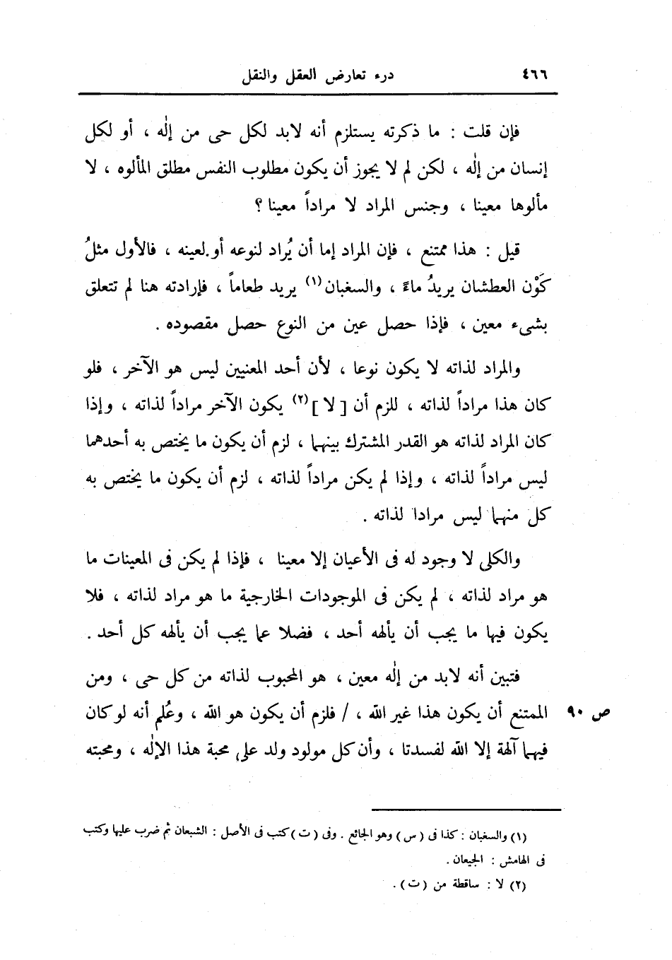 فإن قلت: ما ذكرته يستلزم أنه لا بد لكل حي من إله، أو لكل إنسان من إله، لكن لم لا يجوز أن يكون مطلوب النفس مطلق المألوه، لا مألوهاً معيناً، وجنس المراد لا مراداً معيناً؟.
