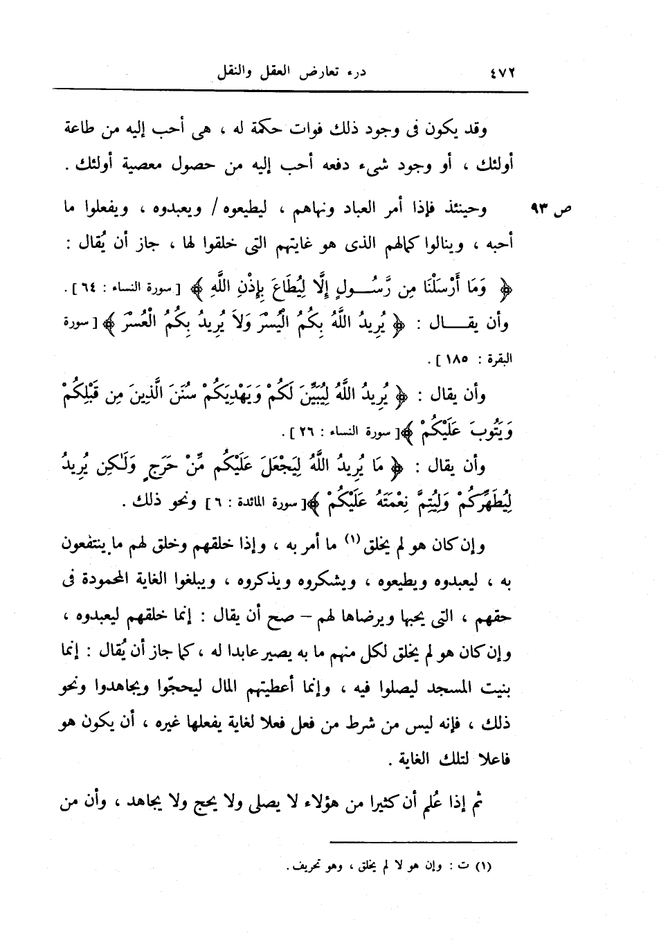 وإن كان هو لم يخلق ما أمره به، وإذا خلقهم وخلق لهم ما ينتفعون به، ليعبدوه ويطيعوه، ويشكروه ويذكروه، ويبلغوا الغاية المحمودة في حقهم، التي يحبها ويرضاها لهم - صح أن يقال: إنما خلقهم ليعبدوه، وإن كان هو لم يخلق لكل منهم ما به يصير عابداً له، كما جاز أن يقال: وإنما بنيت المسجد ليصلوا فيه، وإنما أعطيتهم المال ليحجوا ويجاهدوا ونحو ذلك، فإنه ليس من شرط من فعل فعلاً لغاية يفعلها غيره، أن يكون هو فاعلاً لتلك الغاية.