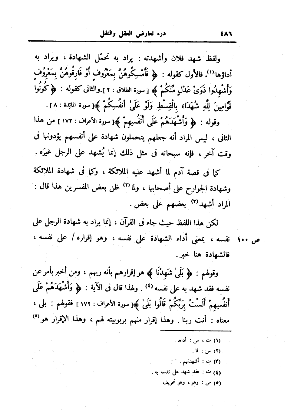 وقوله: {وأشهدهم على أنفسهم} ، من هذا الثاني، ليس المراد أنه جعلهم يتحملون شهادة على أنفسهم يؤدونها في وقت آخر، فإنه سبحانه في مثل ذلك إنما يشهد على الرجل غيره.
