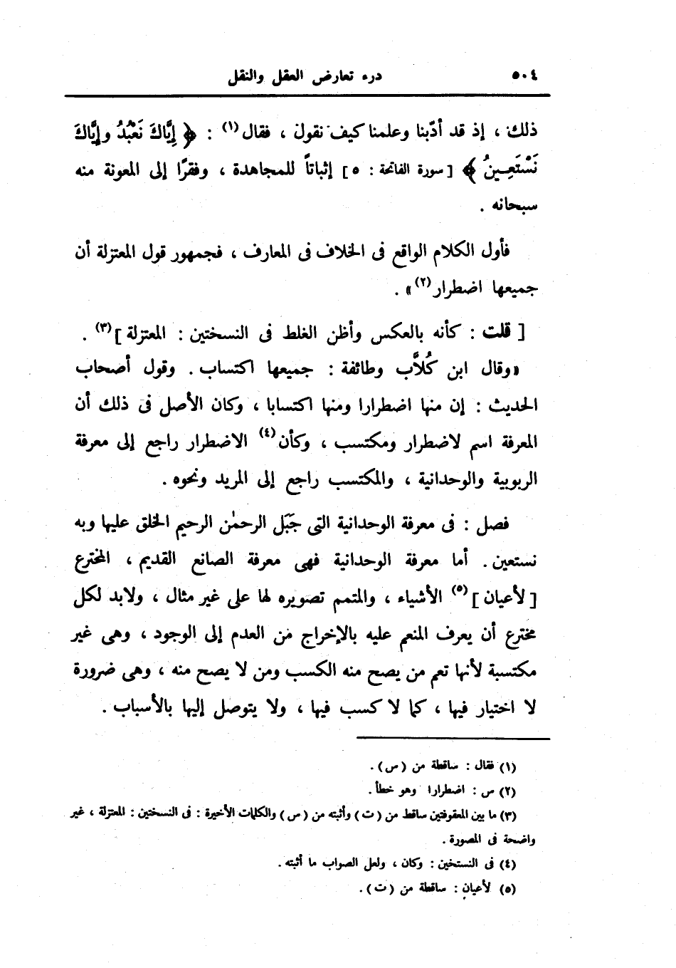 وقول أصحاب الحديث: إن منها اضطراراً ومنها اكتساباً، وكان الأصل في ذلك أن المعرفة اسم لاضطرار ومكتسب، وكأن الاضطرار راجع إلى معرفة الربوبية والوحدانية، والمكتسب راجع إلى المريد ونحوه.