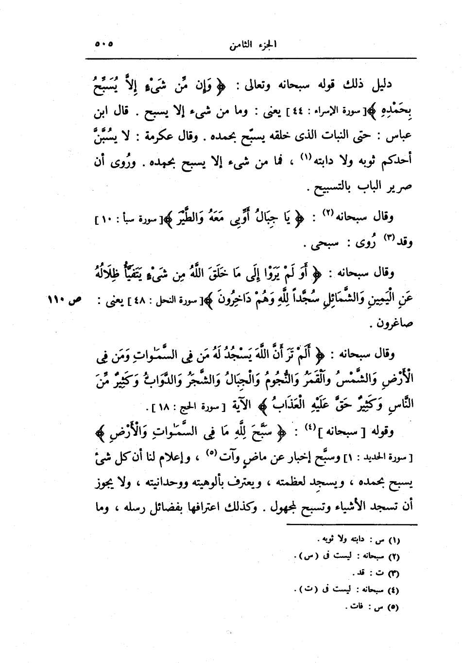 وقال سبحانه: {ألم تر أن الله يسجد له من في السماوات ومن في الأرض والشمس والقمر والنجوم والجبال والشجر والدواب وكثير من الناس وكثير حق عليه العذاب} الآية.