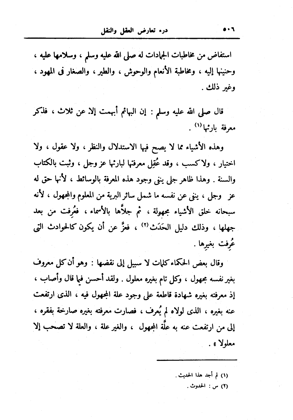 قال صلى الله عليه وسلم: «إن البهائم أبهمت إلا عن ثلاث» ، فذكر معرفة بارئها.