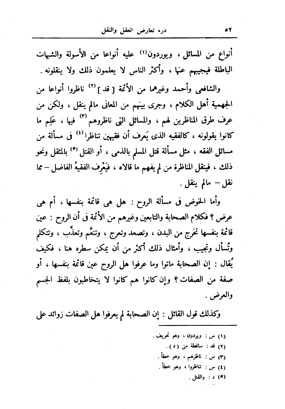 والشافعي وأحمد وغيرهما من الأئمة قد ناظروا أنواعاً من الجهمية أهل الكلام وجرى بينهم من المعاني ما لم ينقل، ولكن من عرف طريق المناظرين لهم، والمسائل التي ناظروهم فيها، علم ما كانوا يقولونه، كالفقيه الذي يعرف أن فقيهين تناظرا في مسألة من مسأئل الفقه، مثل مسألة قتل المسلم بالذمي، أو القتل بالمثقل ونحو ذلك، فينقل المناظرة من لم يفهم ما قالاه، فيعرف الفقيه الفاضل - مما نقل - ما لم ينقل.