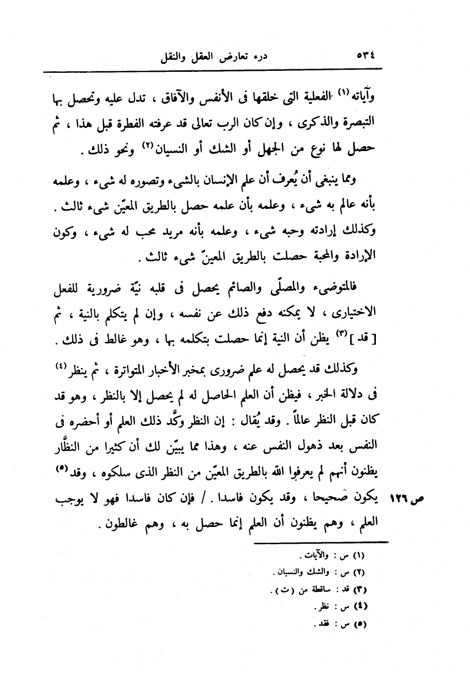 وكذلك قد يحصل له علم ضروري بمخبر الأخبار المتواترة، ثم ينظر في دلالة الخبر، فيظن أن العلم الحاصل له لم يحصل إلا بالنظر، وهو قد كان قبل النظر عالماً.