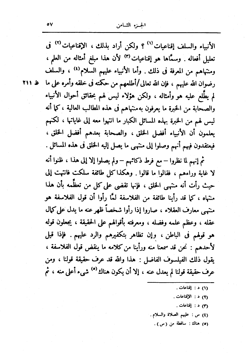 الأنبياء والسلف إقناعيات؟ ولكن أراد بذلك، الإقناعيات في تعليل أفعاله.