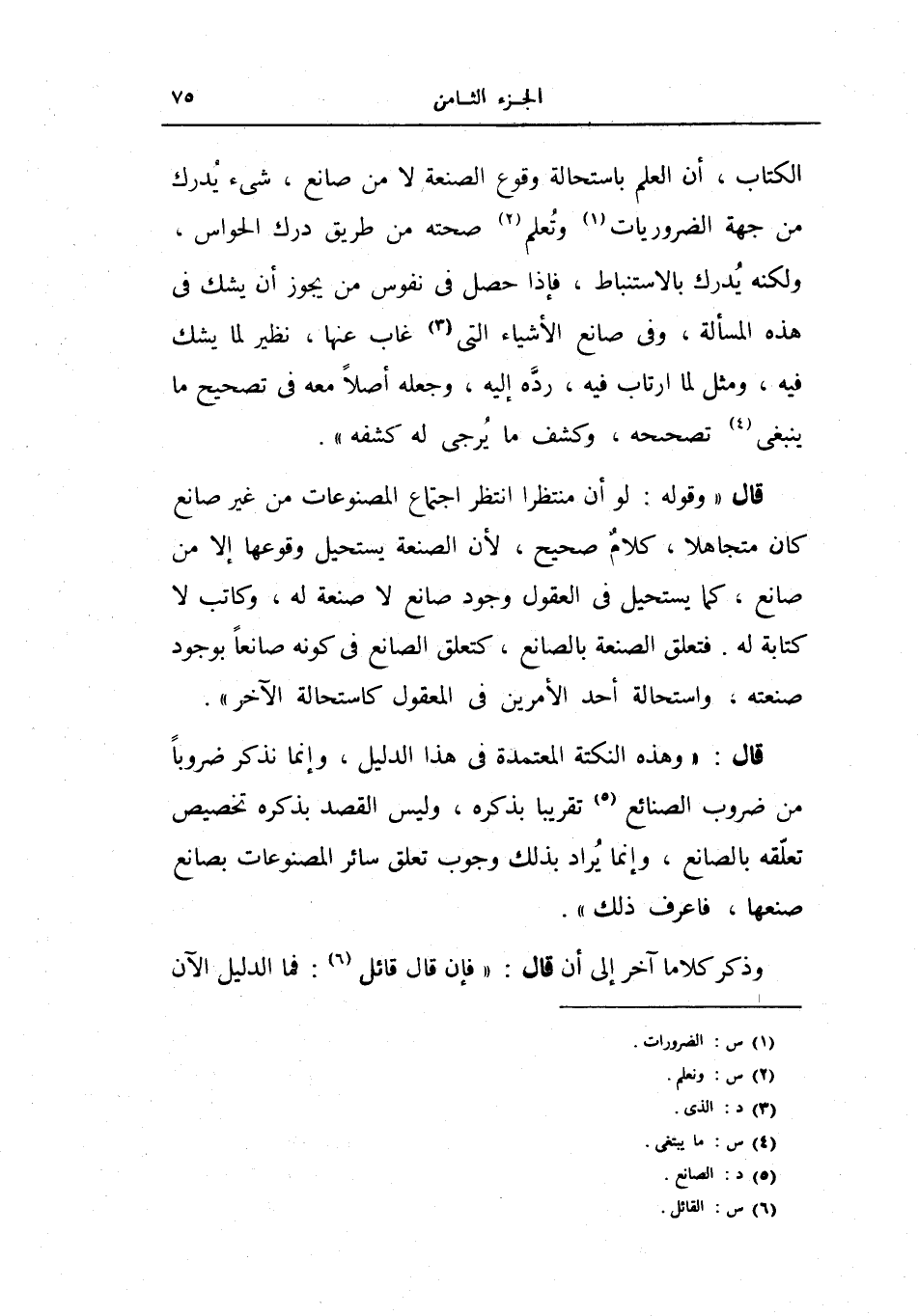 قال: (وهذه النكتة المعتمدة في هذا الدليل، وإنما نذكر ضروباً من ضروب الصنائع تقريباً بذكره، وليس القصد بذكره تخصيص تعليقه بالصانع، وإنما يراد بذلك وجوب تعلق سائر المصنوعات بصانع صنعها، فاعرف ذلك) .