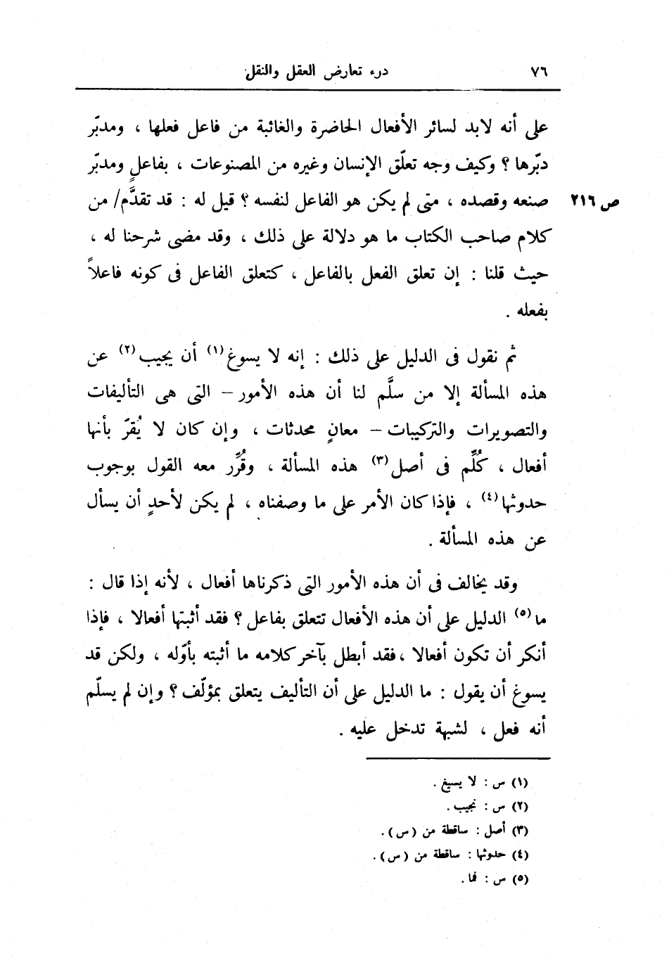 وقد يخالف في أن هذه الأمور التي ذكرناها أفعال، لأنه إذا قال: ما الدليل على أن هذه الأفعال تتعلق بفاعل؟ فقد أثبتها أفعالاً، فإذا أنكر أن تكون أفعالاً، فقد أبطل بآخر كلامه ما أثبته بأوله، ولكن قد يسوغ أن يقول: ما الدليل على أن التأليف يتعلق بمؤلف؟ وإن لم يسلم أنه فعل، لشبهة تدخل عليه.